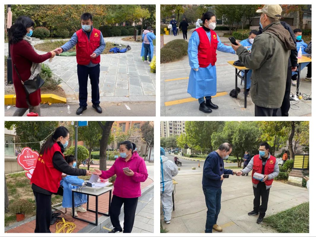 志愿服務(wù)暖人心。志愿者們準(zhǔn)時(shí)到達(dá)社區(qū)核酸采集點(diǎn),在各個(gè)檢測(cè)點(diǎn)幫助維持秩序,引導(dǎo)群眾保持安全距離,有序檢測(cè),幫助老年群眾注冊(cè)核酸檢測(cè)信息碼,發(fā)放核酸檢測(cè)貼紙,宣傳疫情防控法律法規(guī),針對(duì)群眾提出的各項(xiàng)疑問進(jìn)行耐心解答。志愿者們?cè)诓煌膷徫簧下穆毐M責(zé),配合社區(qū)工作人員、醫(yī)務(wù)工作者明確分工、協(xié)調(diào)配合,大大提高了檢測(cè)效率,確保了社區(qū)按時(shí)完成全員核酸檢測(cè)工作。